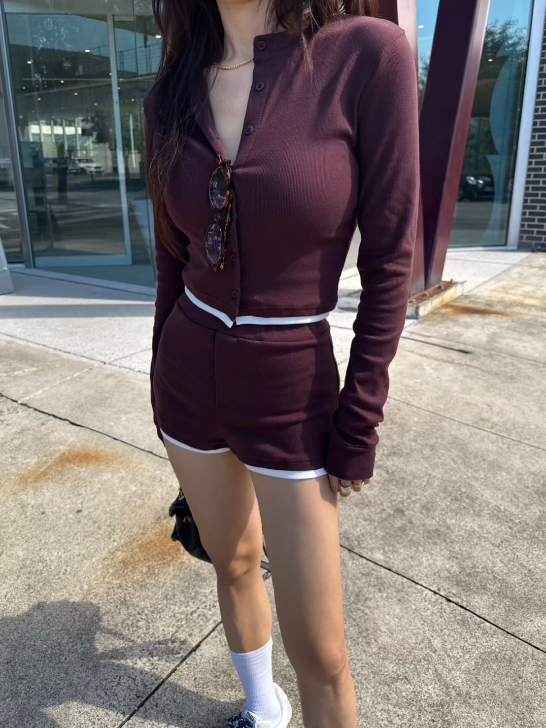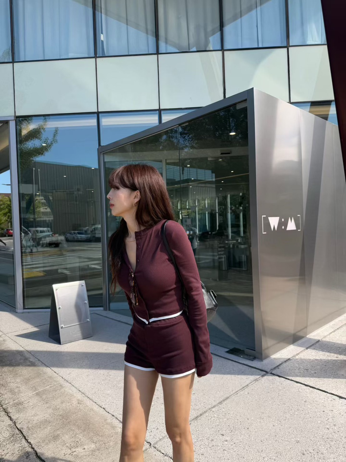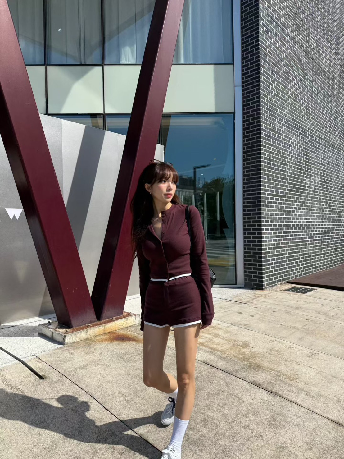 商品詳情 ♡ 𝙢𝙖𝙩𝙚𝙧𝙞𝙖:棉 - ♡ 𝙤𝙧𝙞𝙜𝙞𝙣:韓國檔口 - ♡ 𝙨𝙞𝙯𝙚: F 👉追蹤IG享甜甜價🔍twins.girls.korea 拼色滾邊排釦墊肩外套+彈性短褲SET TWD $1,680 TWD $1,596