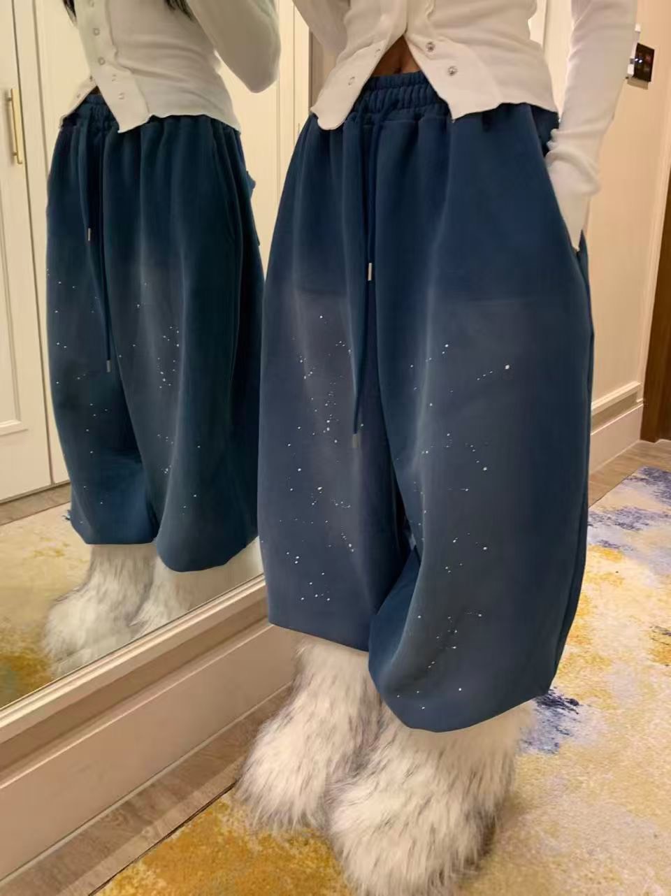 商品詳情 ♡ 𝙢𝙖𝙩𝙚𝙧𝙞𝙖:棉 - ♡ 𝙤𝙧𝙞𝙜𝙞𝙣:韓國檔口 - ♡ 𝙨𝙞𝙯𝙚: F 👉追蹤IG享甜甜價🔍twins.girls.korea 磨白油漆寬鬆抽繩加絨休閒褲 TWD $1,780 TWD $1,691