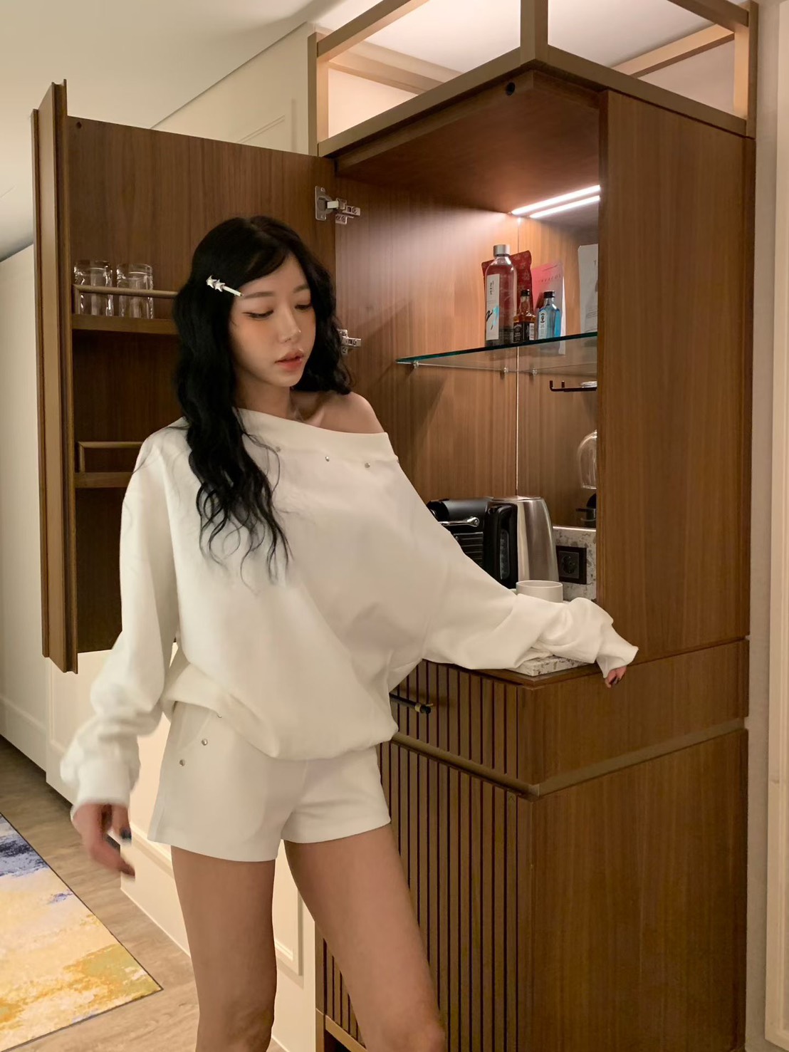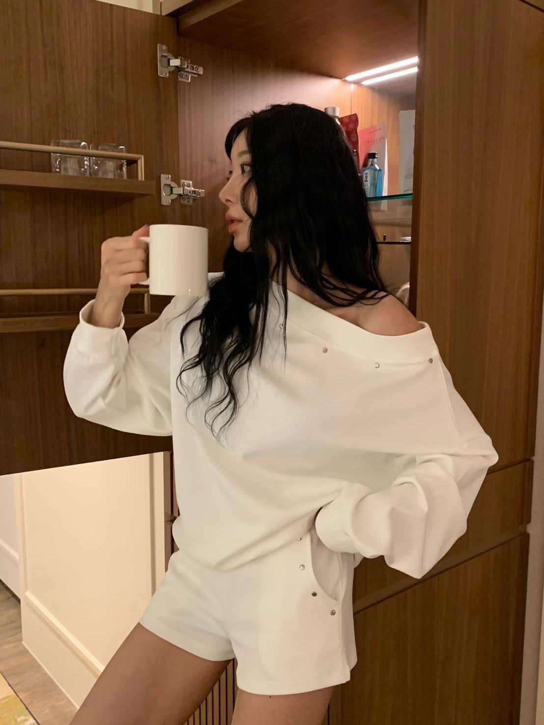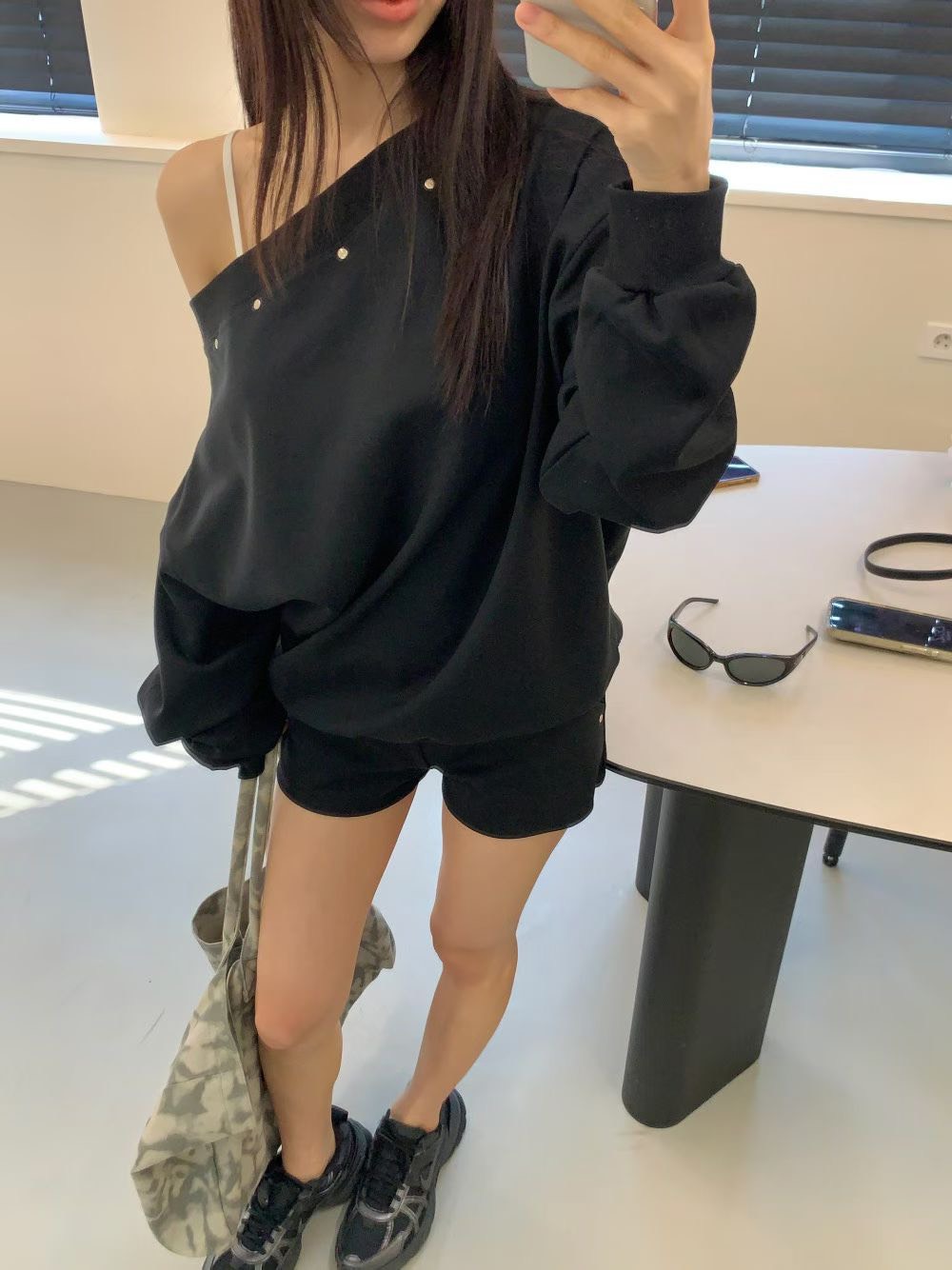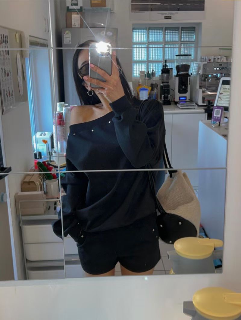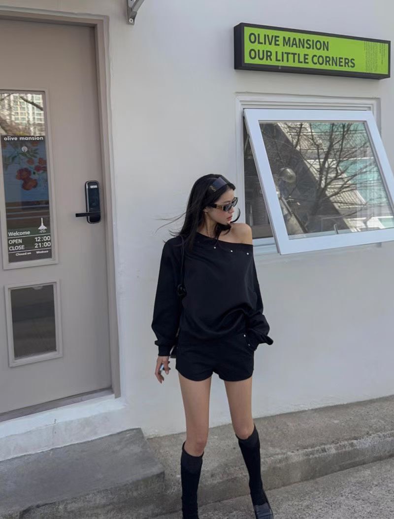 設計感斜肩上衣+短褲SET