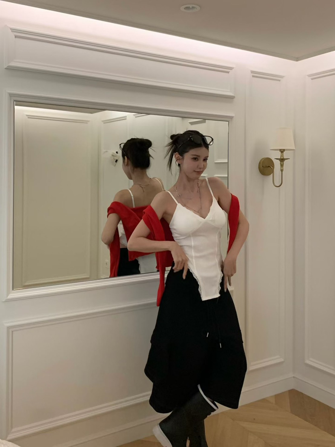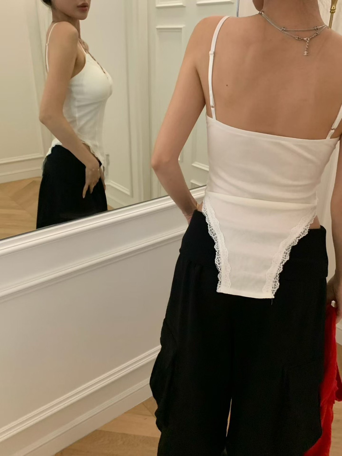 商品詳情 ♡ 𝙢𝙖𝙩𝙚𝙧𝙞𝙖:棉 - ♡ 𝙤𝙧𝙞𝙜𝙞𝙣:韓國檔口 - ♡ 𝙨𝙞𝙯𝙚: F 👉追蹤IG享甜甜價🔍twins.girls.korea V領帶胸墊蕾絲背心 TWD $1,380 TWD $1,311