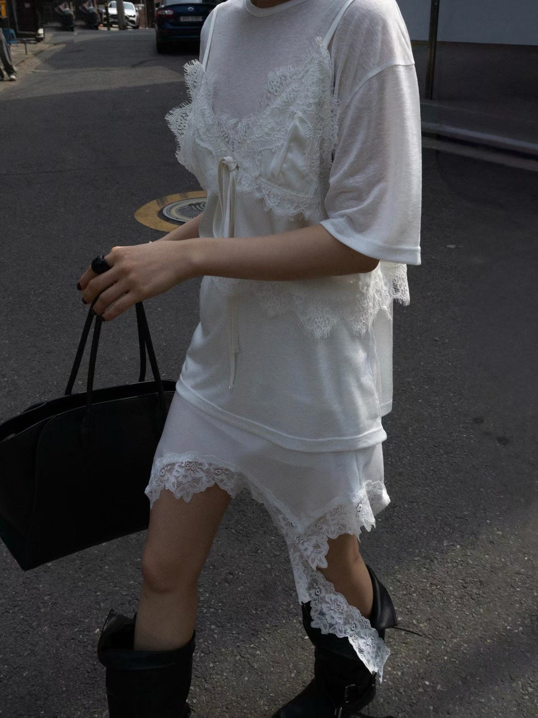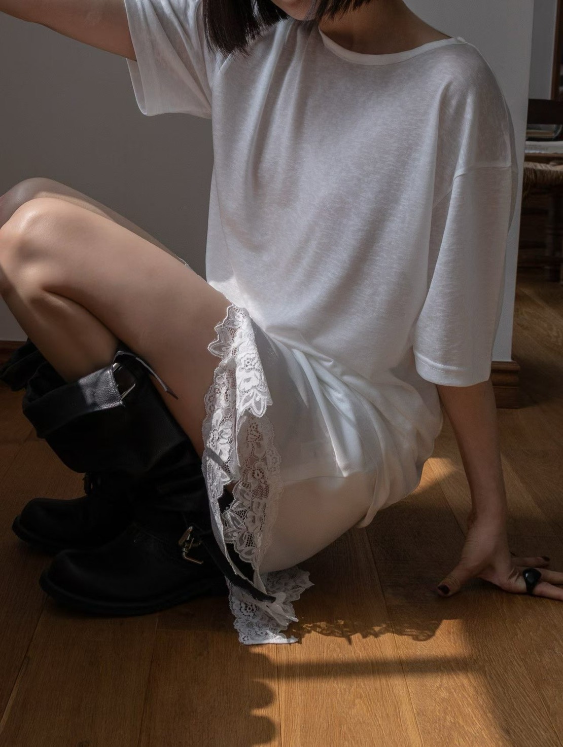 商品詳情 ♡ 𝙢𝙖𝙩𝙚𝙧𝙞𝙖:緞面 - ♡ 𝙤𝙧𝙞𝙜𝙞𝙣:韓國檔口 - ♡ 𝙨𝙞𝙯𝙚: S/M 👉追蹤IG享甜甜價🔍twins.girls.korea 不對稱下擺蕾絲拼接裙 TWD $1,380 TWD $1,311