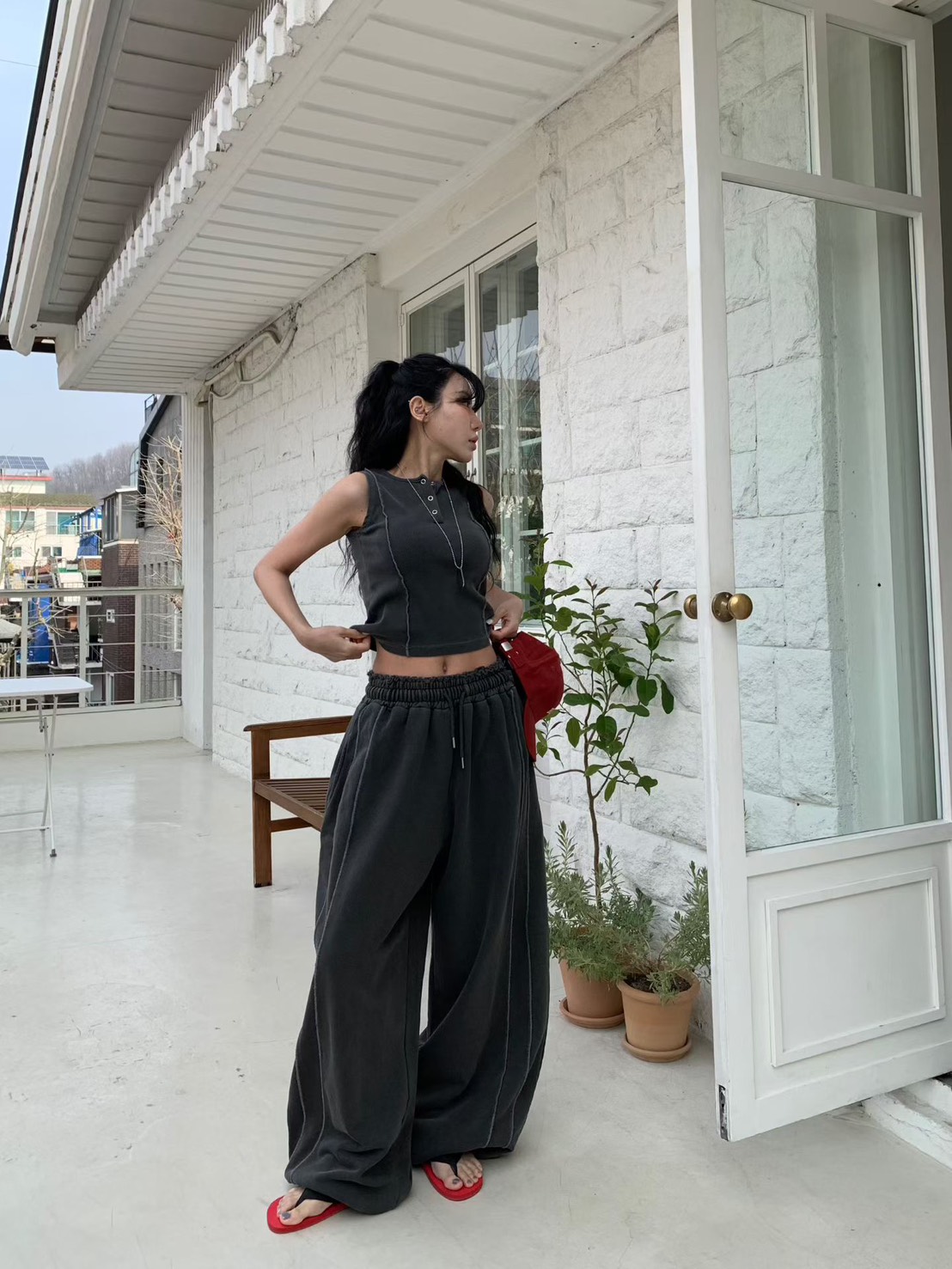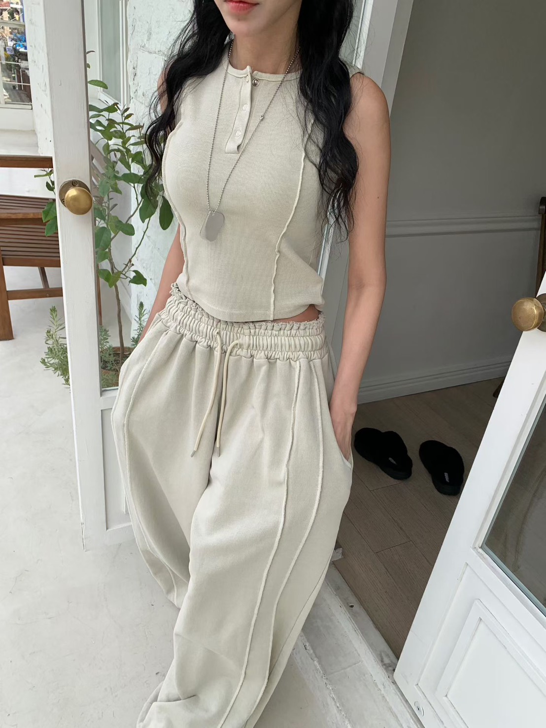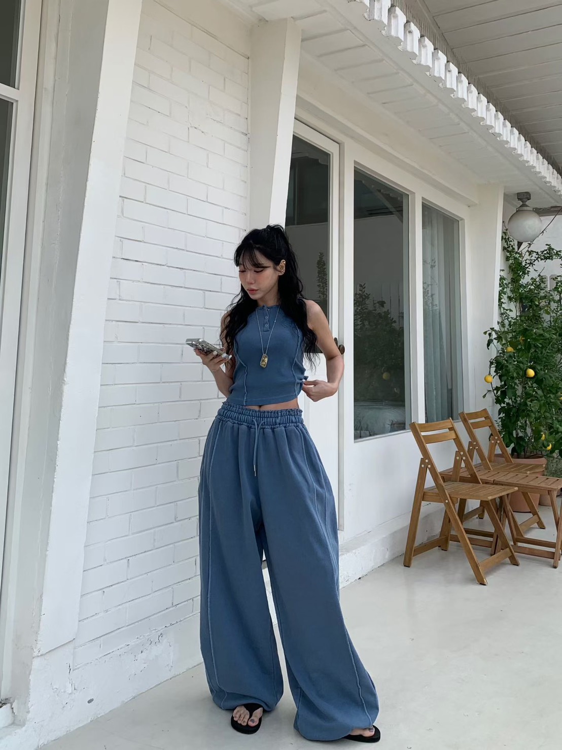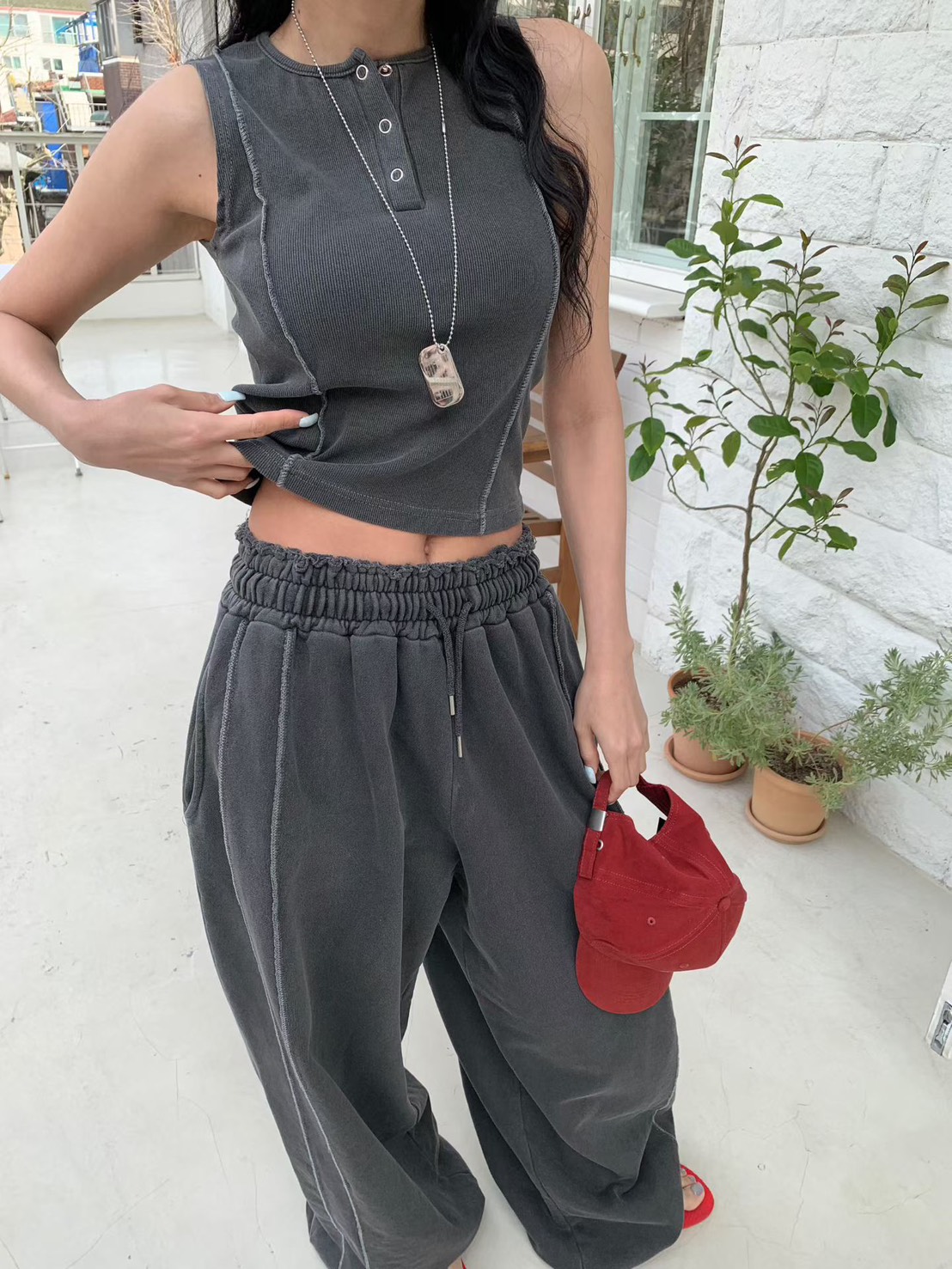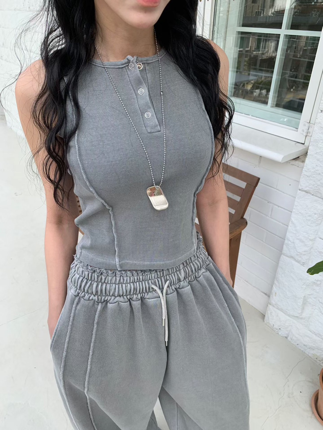 洗色外縫線壓扣背心/洗色外縫線薄毛巾棉長褲