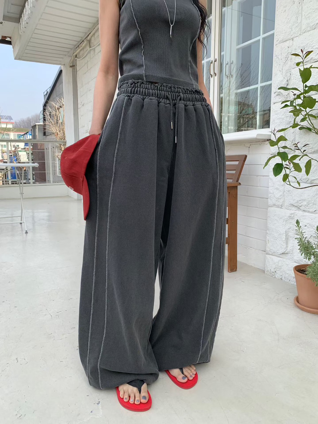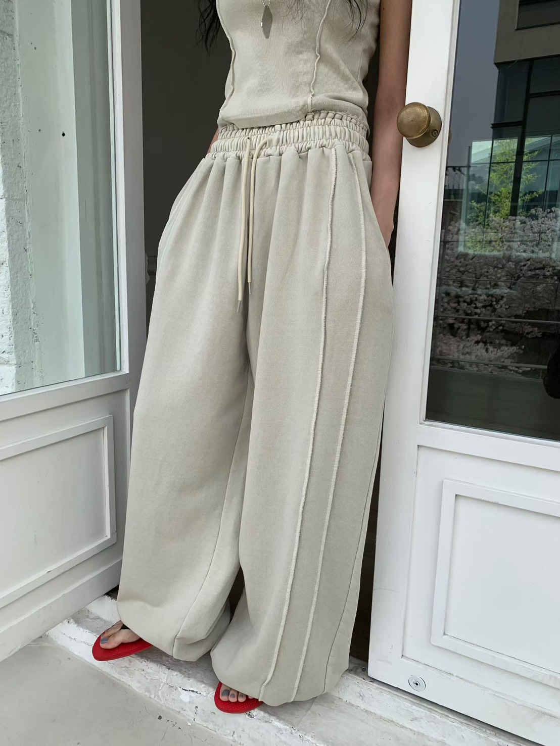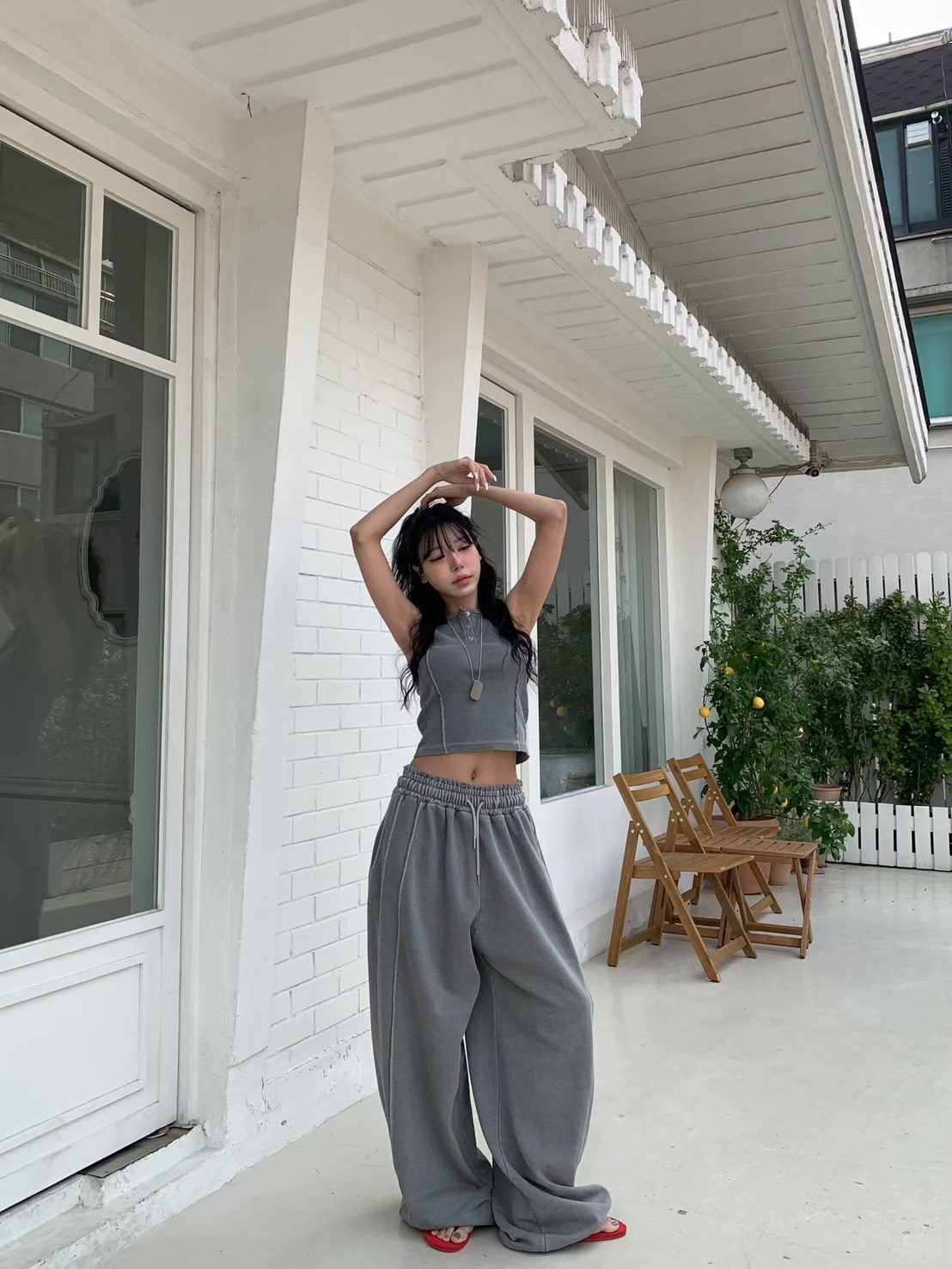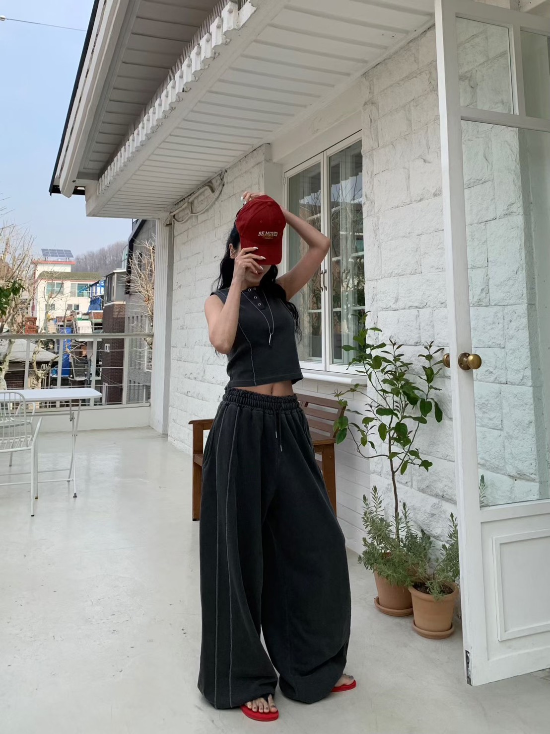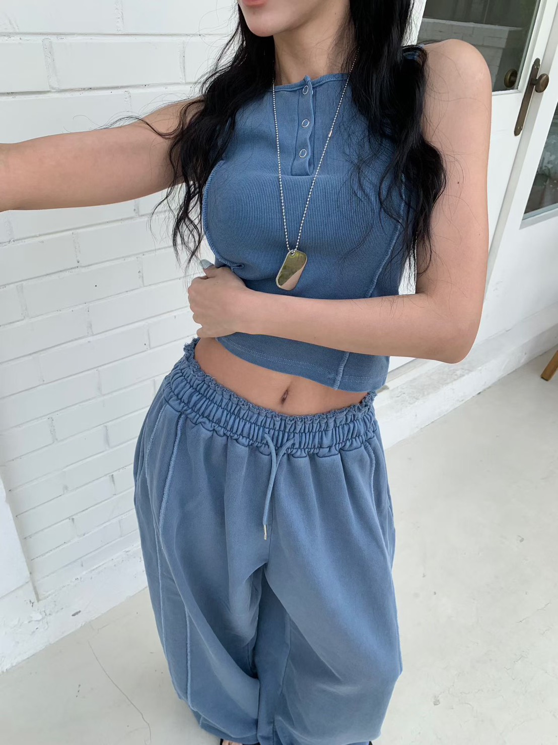 洗色外縫線壓扣背心/洗色外縫線薄毛巾棉長褲